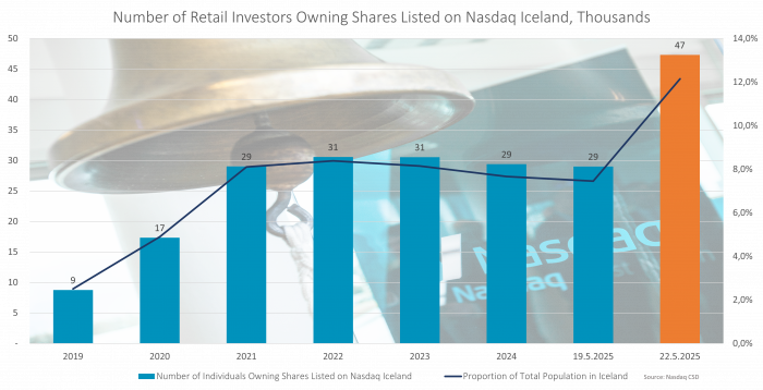 Prior to the offering, the total number of individuals holding shares in listed companies on Nasdaq Iceland* and in securities accounts with Nasdaq CSD in Iceland stood at just over 29,000.