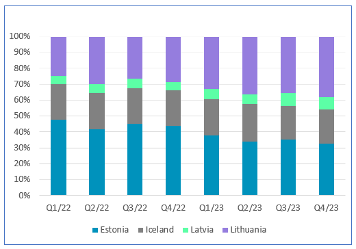 Estonia and Lithuania represent the highest number of CA, accounting for over 70% of the total CA volumes.